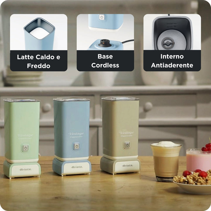 Ariete 2878 Cappuccinatore Vintage - Montalatte a caldo e a freddo - Cappuccino, cioccolata, infusi liofilizzati - 500 Watt - Celeste