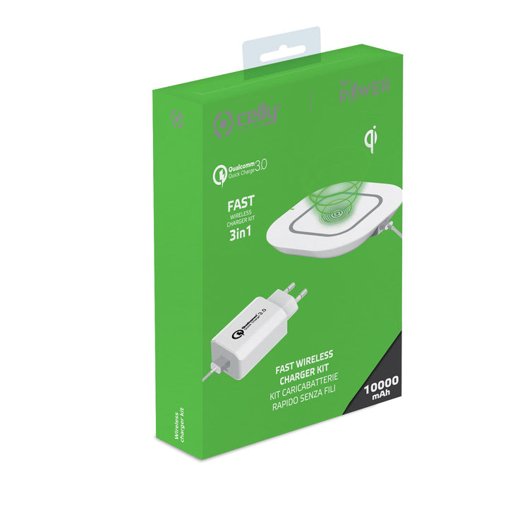 Celly WLKIT3IN1WH Caricabatterie per dispositivi mobili Telefono cellulare, Smartphone, Tablet Bianco USB Carica wireless Ricarica rapida Interno