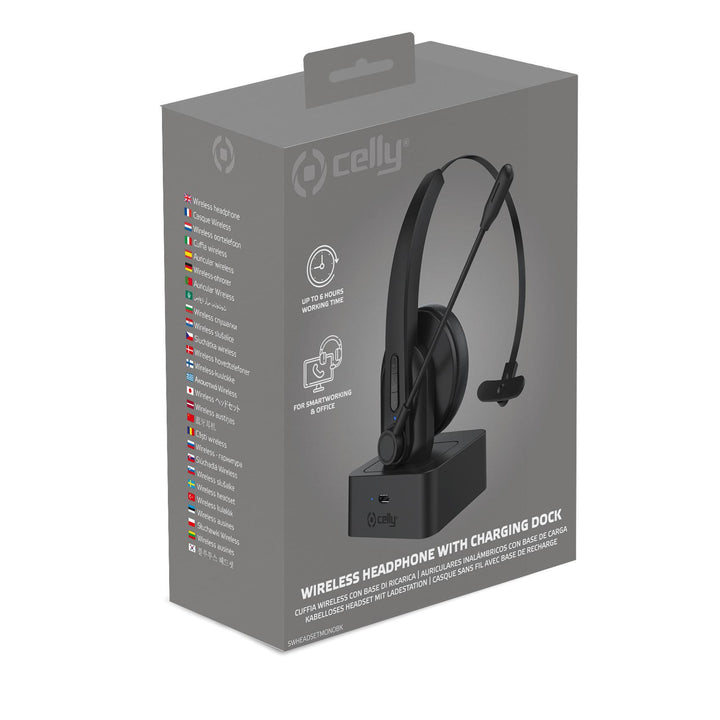 Celly SWHEADSETMONO Auricolare Wireless A Padiglione Ufficio Bluetooth Base di ricarica Nero