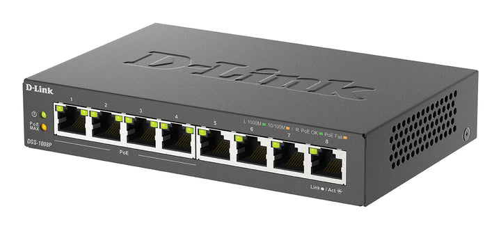 D-Link DGS-1008P/E switch di rete Non gestito L2 Gigabit Ethernet (10/100/1000) Supporto Power over Ethernet (PoE) Desktop Nero