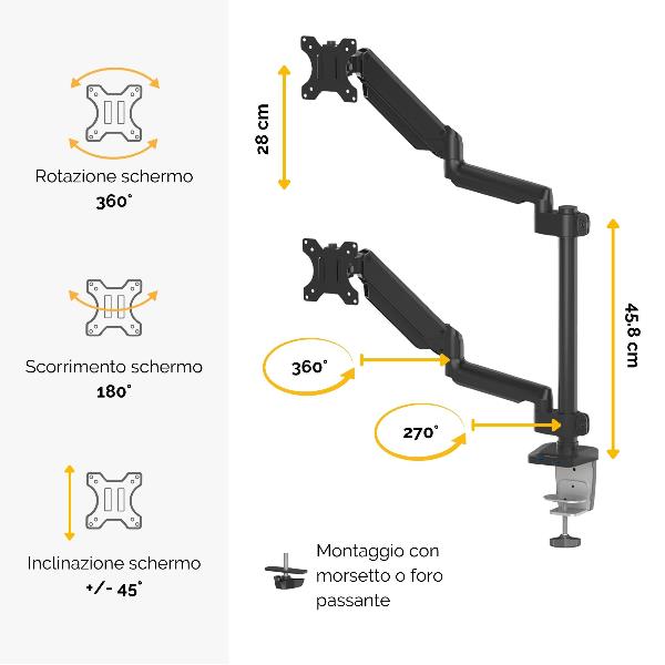 FELLOWES BRACCIO MONITOR DOPPIO PLATINUM 8043401