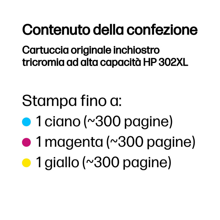 HP Cartuccia originale inchiostro tricromia ad alta capacità 302XL