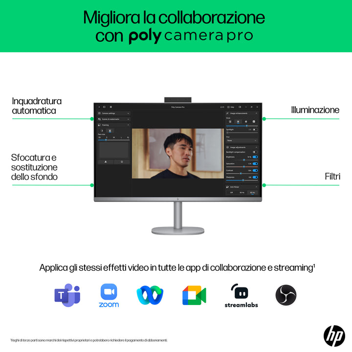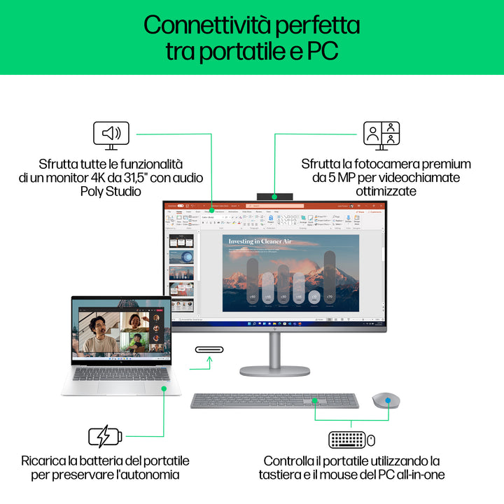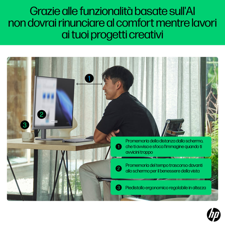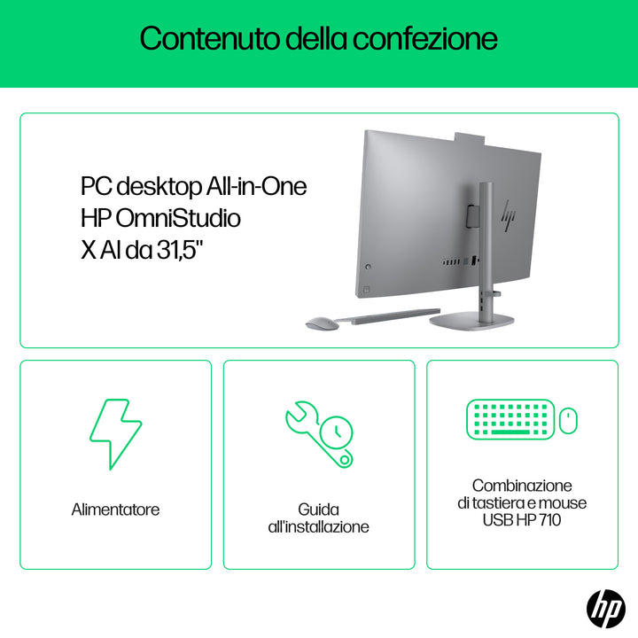 HP OmniStudio X 32-c0010nl Intel Core Ultra 7 155H 80 cm (31.5") 3840 x 2160 Pixel PC All-in-one 32 GB DDR5-SDRAM 1 TB SSD NVIDIA GeForce RTX 4050 Windows 11 Home Wi-Fi 6E (802.11ax) AI PC Argento