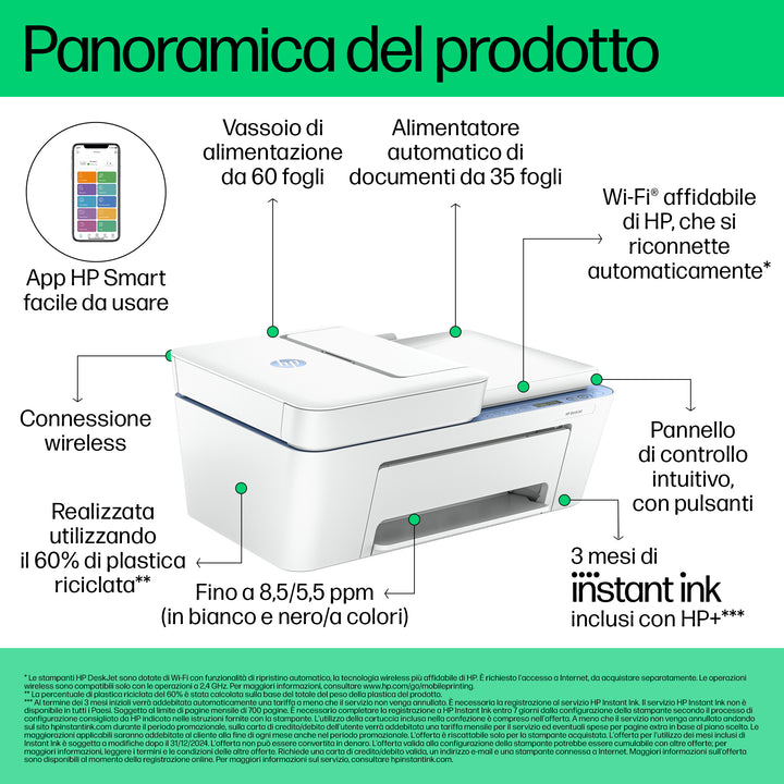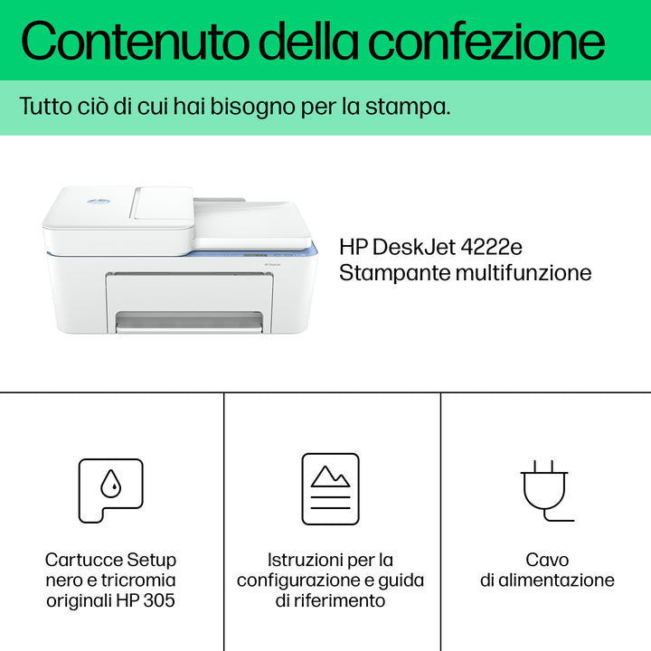 HP DeskJet 4222e Wireless All-in-One Colore Stampante, Instant Ink; Fotocopiatrice, scanner