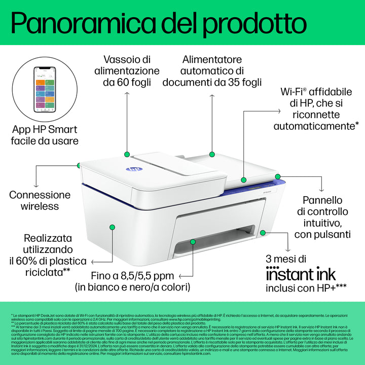 HP DeskJet 4230e Wireless All-in-One Colore Stampante, Instant Ink; Fotocopiatrice, scanner