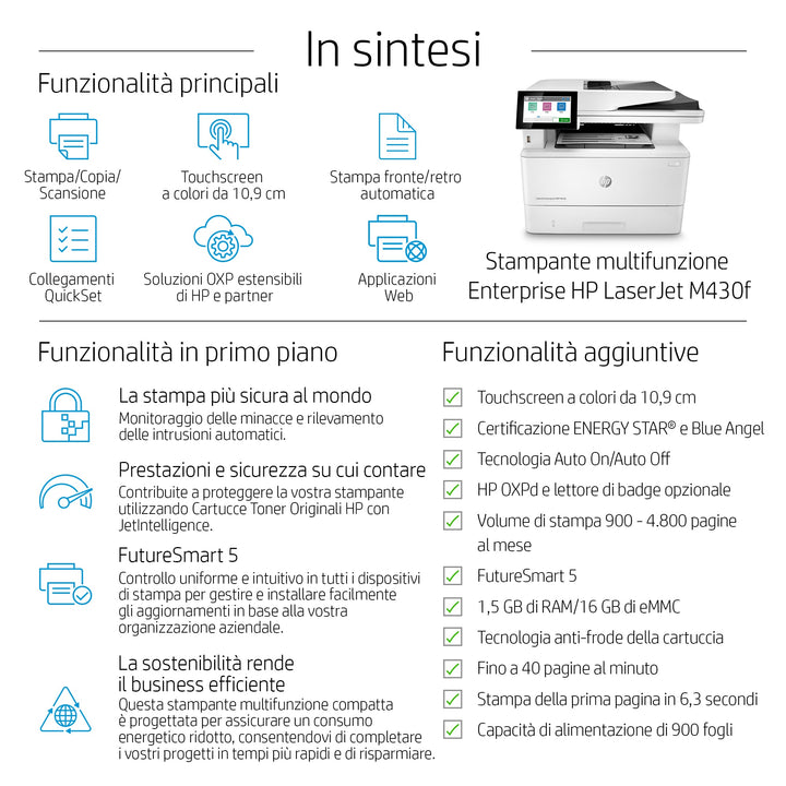 HP LaserJet Enterprise Stampante multifunzione Enterprise LaserJet M430f