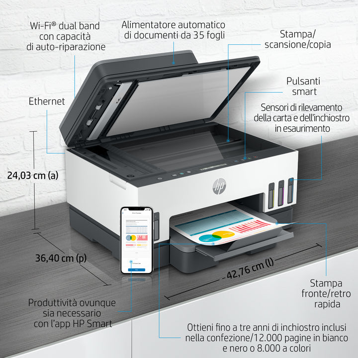HP Smart Tank 7305 Wireless All-in-One Colore Stampante, Stampa fronte/retro; fotocopiatrice, scanner