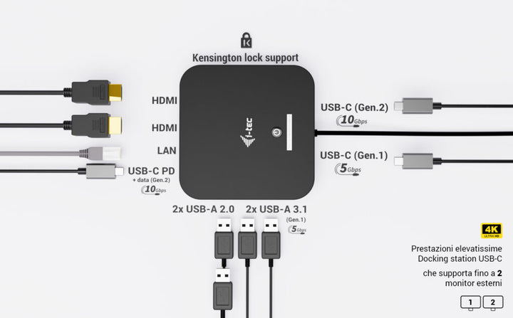 i-tec USB-C Dual HDMI Docking Station with Power Delivery 100 W + Universal Charger 100W