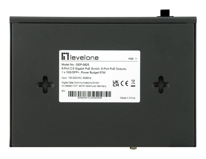 LevelOne GEP-0625 switch di rete Non gestito 2.5G Ethernet (100/1000/2500) Supporto Power over Ethernet (PoE) Nero