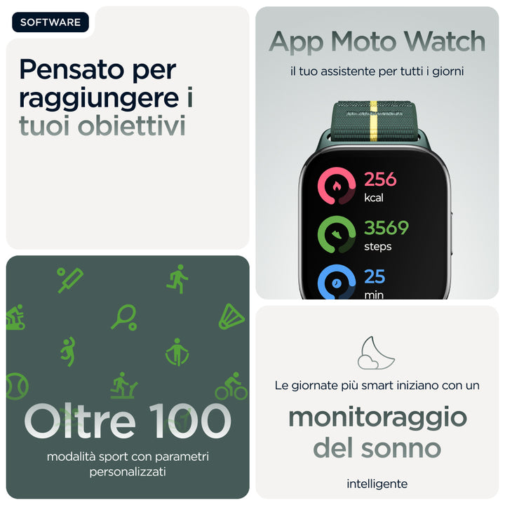 Motorola moto watch fit 4,83 cm (1.9") OLED 44.5 mm Digitale Touch screen Verde, Grigio GPS (satellitare)