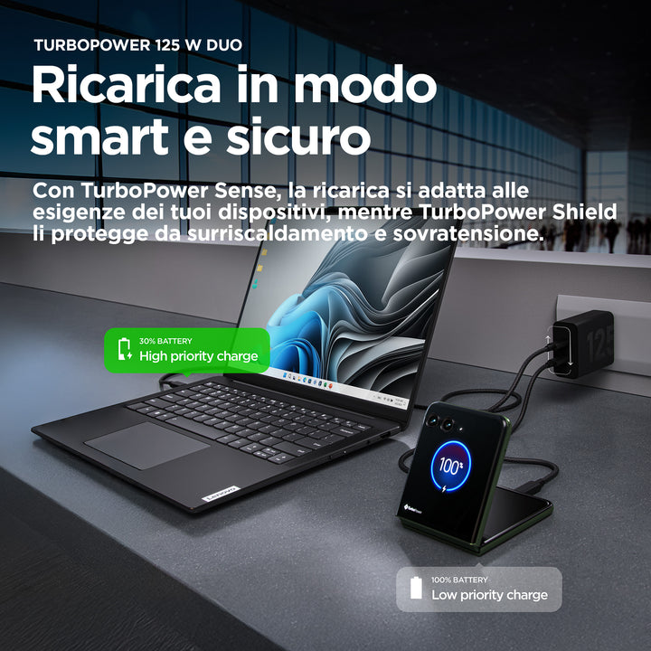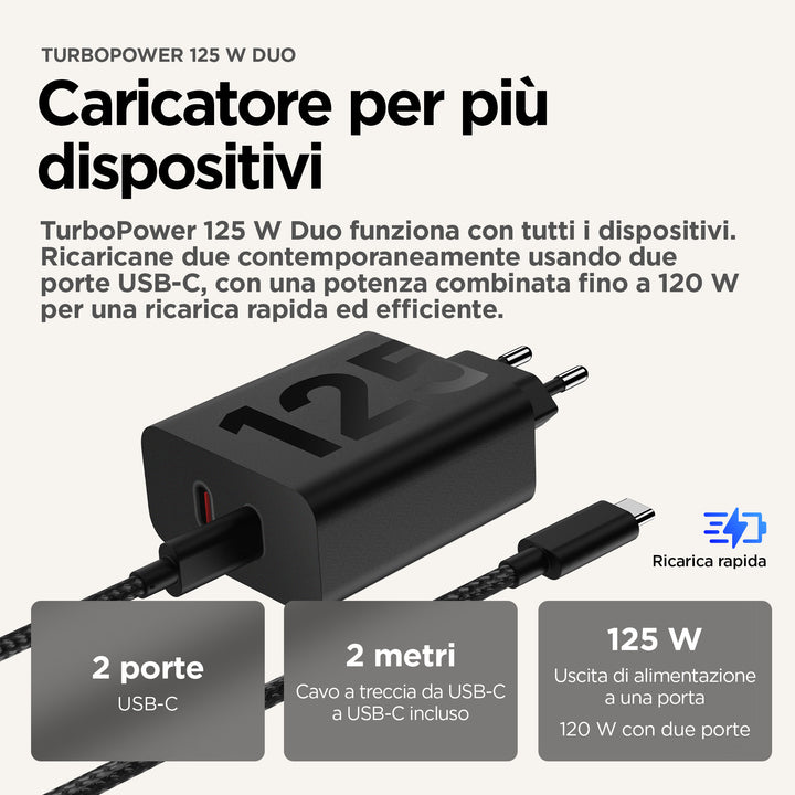Motorola TurboPower 125W Duo Charger Universale Nero AC Ricarica rapida Interno