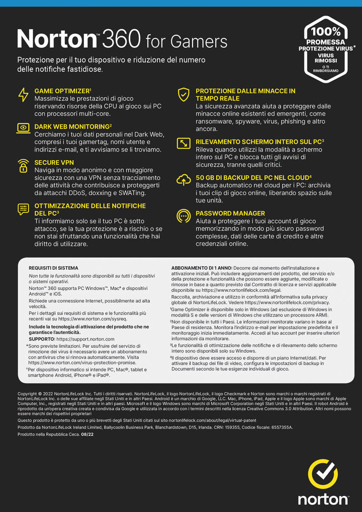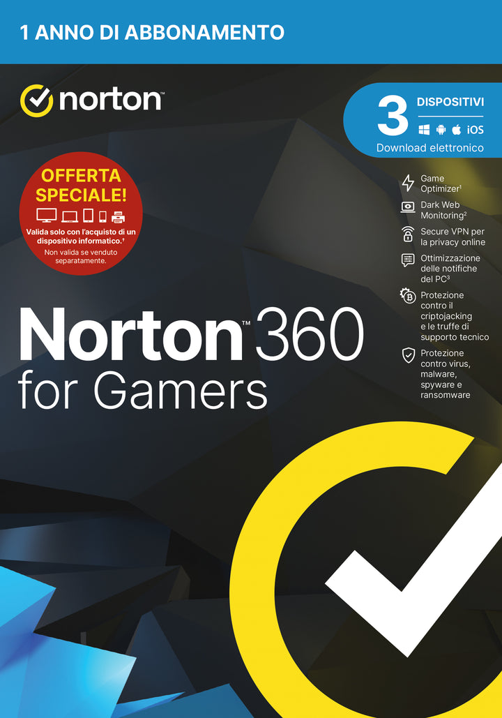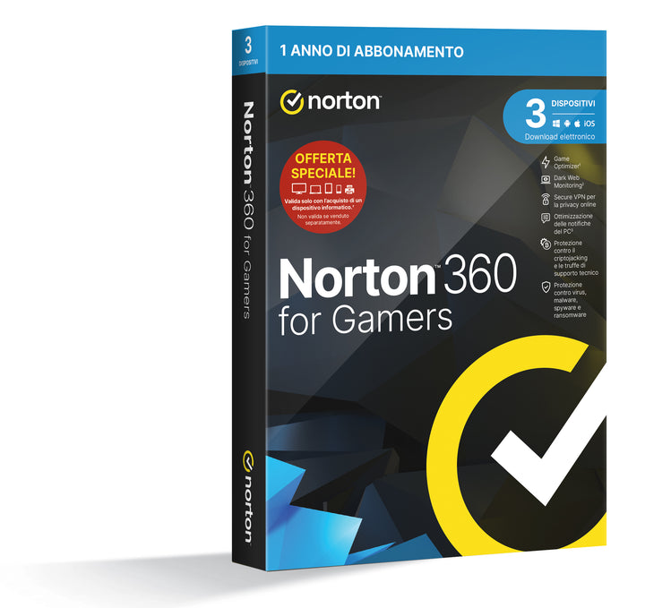 Norton 360 for Gamers 2024 | Antivirus per 3 Dispositivi | Licenza di 1 anno | PC, Mac, tablet e smartphone