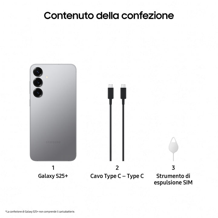 Samsung Galaxy S25+ Smartphone AI, Display 6.7'' QHD+ Dynamic AMOLED 2X, Fotocamera 50MP, RAM 12GB, 256GB, 4.900 mAh, Silver shadow