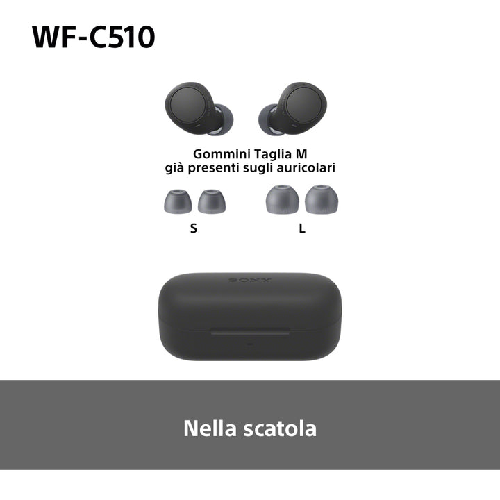 Sony WF-C510 | Cuffie True Wireless - Suono di alta qualità, Equalizzatore personalizzabile, Design Confortevole, Batteria da 22 ore, Ricarica Rapida, Connessione Multipoint Bluetooth, Ambient Sound Mode, Spotify Tap, Classificazione IPX4 - Nero