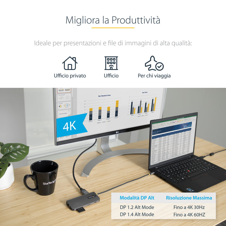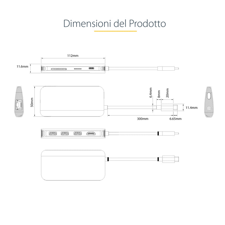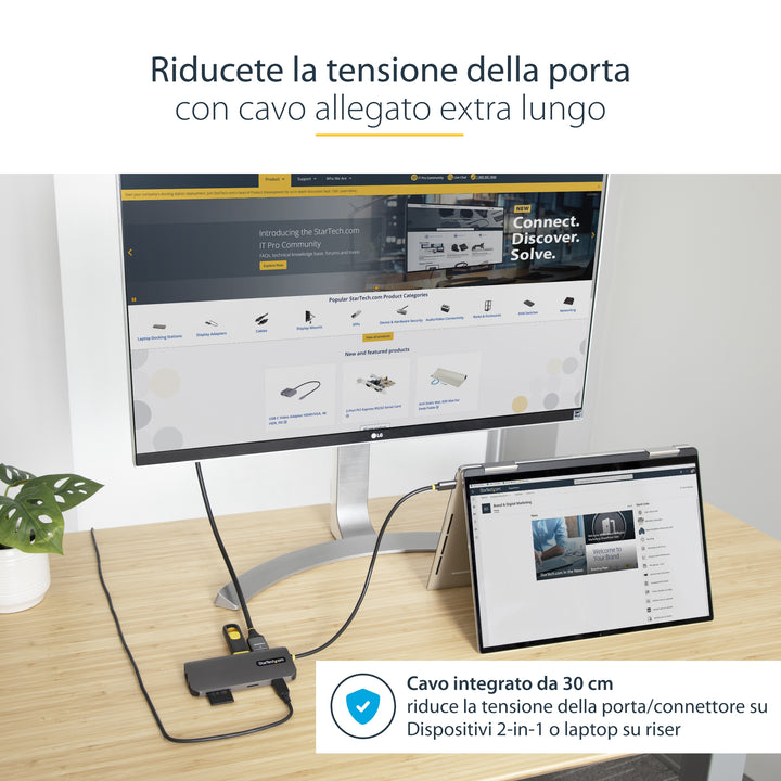 StarTech.com Adattatore Multiporta USB-C HDMI 4K 60Hz, Hub USB-A 5Gbps a 3 Porte , Adattatore USB-C a HDMI con PD 100W Pass-Through, GbE, SD/MicroSD, Cavo da 30 cm, Dock da Viaggio, Docking Station per laptop