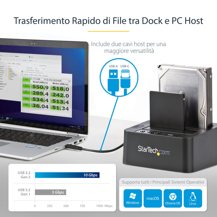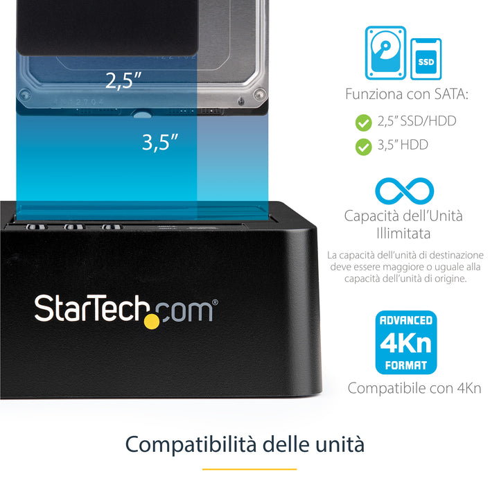 StarTech.com Dock Duplicatore autonomo USB 3.1 (10Gbps) per SATA SSD/HDD da 2,5" & 3,5" - Duplicatore fast-speed 28GB/min