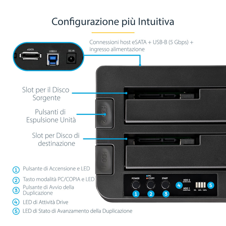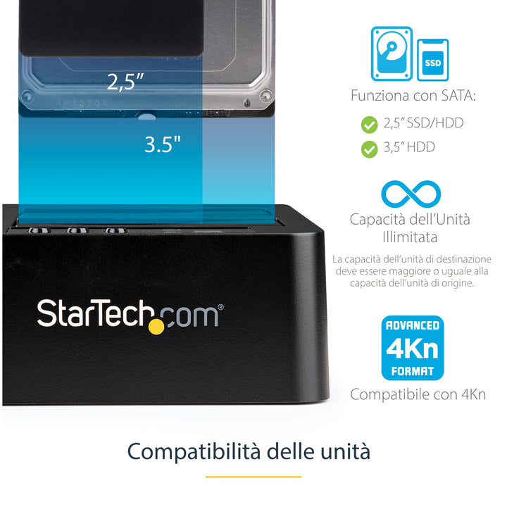 StarTech.com Docking Station per Hard Disk a 2 Slot - Duplicatore Standalone USB 3.0 (5 Gbps)/eSATA per SSD/HDD SATA III 2.5/3.5", Clonatore di Hard Drive con Carica dall'Alto