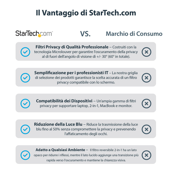 StarTech.com Filtro per la privacy per monitor da 24" - Filtro di protezione dello schermo - Pellicola protettiva per la riduzione della luce blu - 16:10 Widescreen - Opaco/lucido - +/-30 gradi
