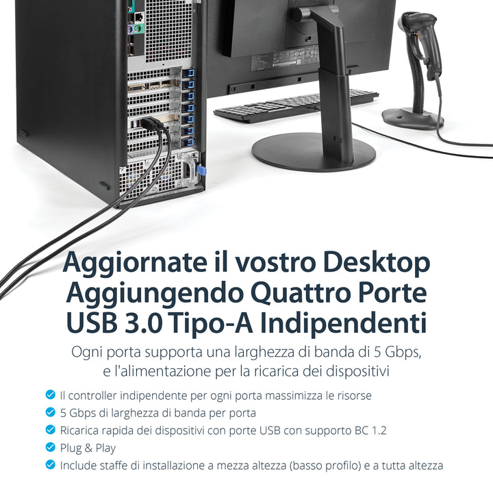 StarTech.com Adattatore scheda SuperSpeed USB 3.0 con 4 porte PCI Express (PCIe) con 4 canali da 5 Gbps dedicati - UASP - Alimentazione SATA/LP4