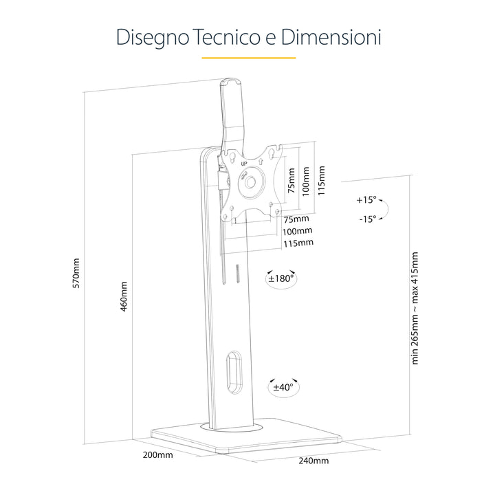 StarTech.com FPPNEUSTND Supporti a parete per TV 86,4 cm (34") Scrivania Nero