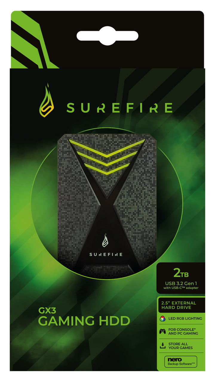 SureFire Gaming disco rigido esterno 2 TB 2.5" Micro-USB B 3.2 Gen 1 (3.1 Gen 1) Nero, Grigio