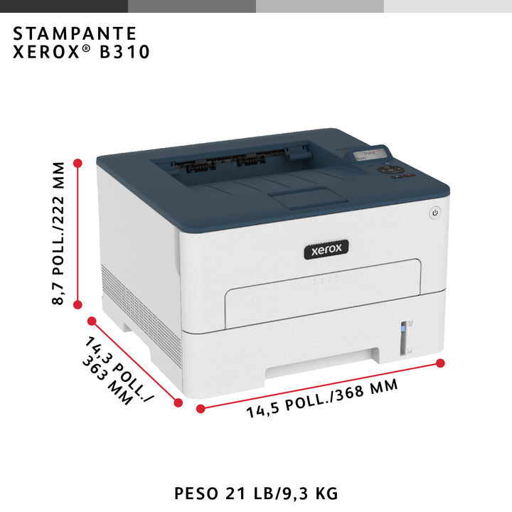 Xerox B310 A4 40 ppm Stampante fronte/retro wireless PS3 PCL5e/6 2 vassoi Totale 350 fogli
