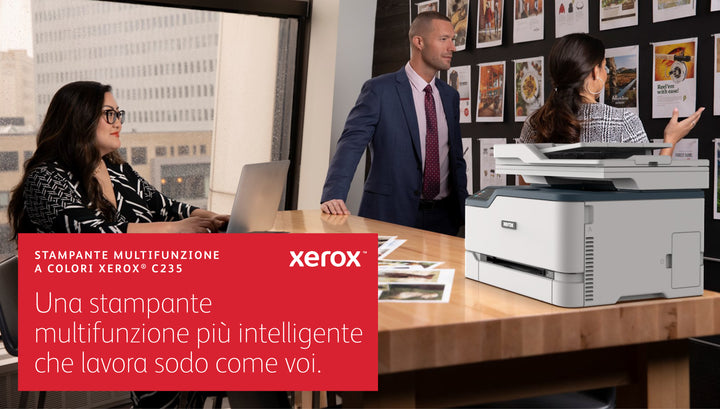 Xerox C235 A4 22 ppm Copia/Stampa/Scansione/Fax wireless con stampa fronte/retro PS3 PCL5e/6 ADF 2 vassoi Totale 251 fogli